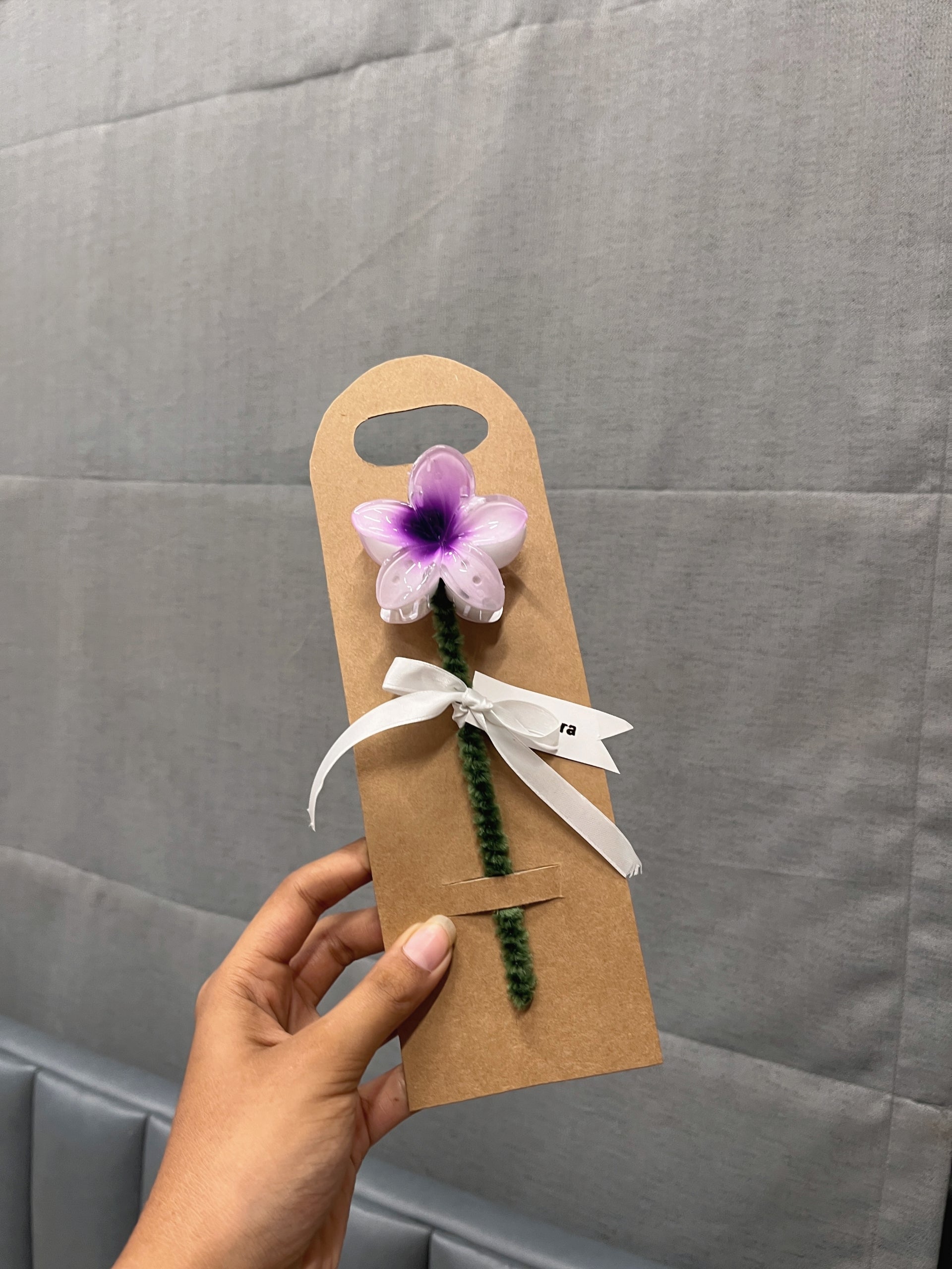Surprise your sister with this thoughtfully curated hamper filled with joy! It includes a beautiful bouquet, delicious chocolates, a cute keychain, stylish hair tie, elegant earrings, warm fairy lights, and a trendy hair claw clip – all packed with love to make her smile brighter this Raksha Bandhan.